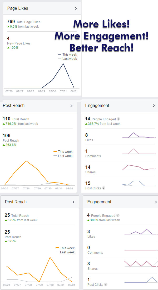 Take a look at the increase in engagement that I got from using these TWO powerhouse elements on just a couple of the Facebook pages I manage.